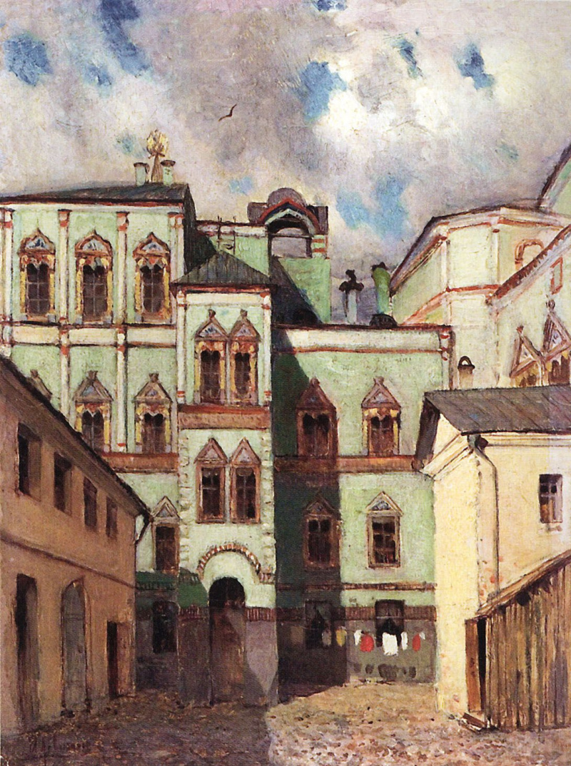 История сохранила нам очень мало памятников древнерусской гражданской архитектуры. В Москве сооружений датируемых XIV, XV, XVI и XVII вв. осталось несколько десятков. Про деревянные дома и говорить сложно – их так мало, что исчисляются единицами. Притом это дома в основном не старше XVIII века. Значительно лучше обстоит дело с церковной архитектурой. Здесь сказалось традиционное уважение к церкви, как главному общественному сооружению улицы или части города, при новом строительстве церкви страдали менее всего. А гражданская архитектура - жилые дома, палаты, дворцы и терема – все это спокойно сносилось ради нового строительства. В XVIII веке огромное количество палат было перестроено, надстроено и включено в состав новых зданий. В наши новые времена есть примеры реставрации и «выкристаллизации» старых палат на фасадах классических дворцов XVIII – XIX вв. Но большинство жилой застройки потеряно навсегда. То есть как выглядели города допетровской Руси мы фактически не знаем. Русский город XVII века остается для нас закрытой книгой. Когда надо что-то сказать на эту тему, то мы обычно приводим в пример картины Апполинария Васнецова и считаем, что это как бы рисунок с натуры, а не фантазия художника. И сегодня, встречая редкие примеры древнерусских жилых зданий нам остается только восторгаться их простой и рациональной архитектурой. Десятитомное издание Памятники архитектуры Москвы, которое включило в себя сотни зданий, тоже уделило древнерусской гражданской архитектуре очень мало внимания. В отличие от церковных зданий, которых в антологии более чем достаточно, в том числе и сооружений явно не первого уровня.