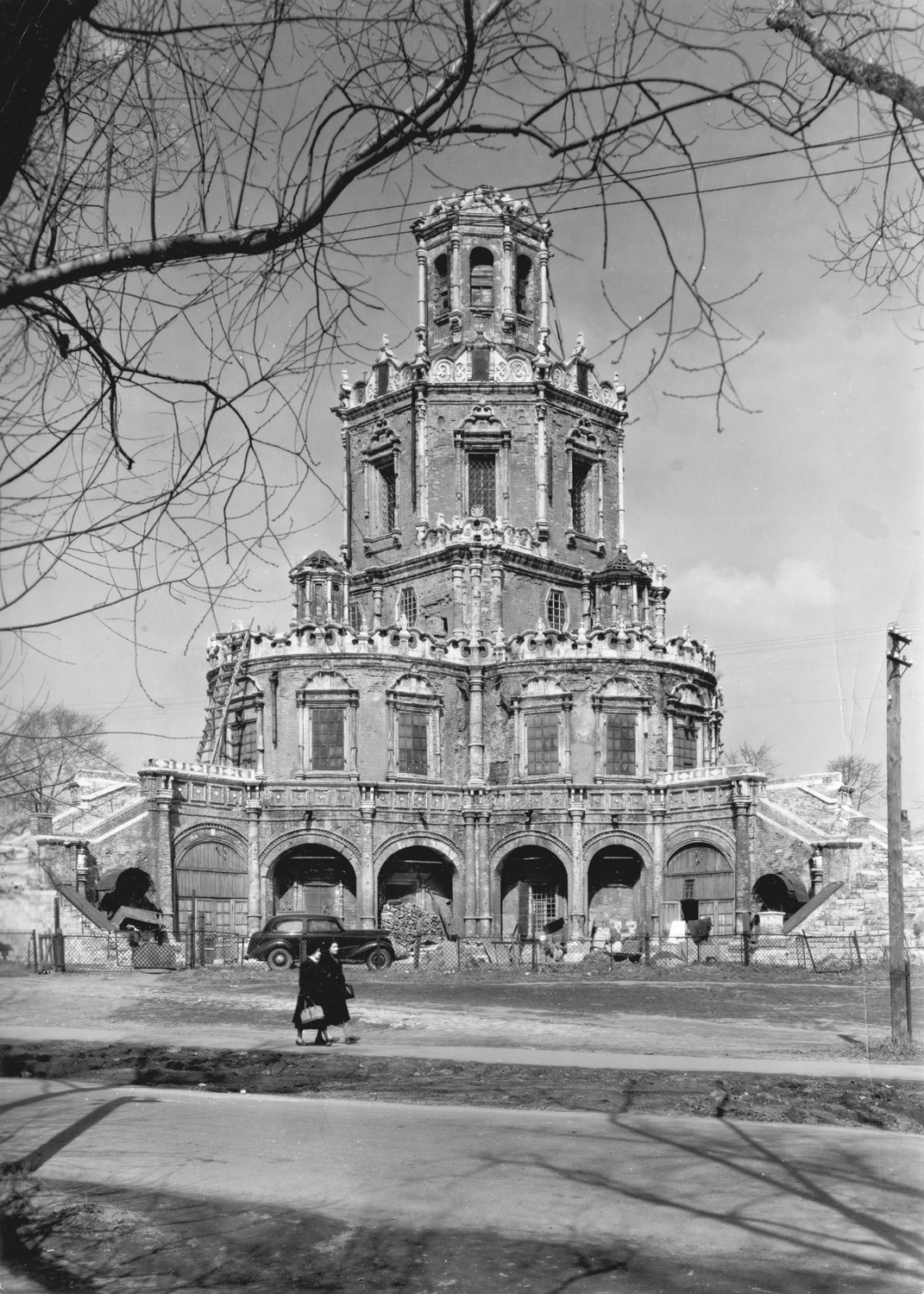 Но в те годы выглядела она непрезентабельно. Во время войны были сбиты купола, что бы они не стали объектом ориентирования для вражеской авиации. Реставрация церкви началась в 1955 году и продолжалась много лет. Фактически было проведено много этапов реставрационных работ.