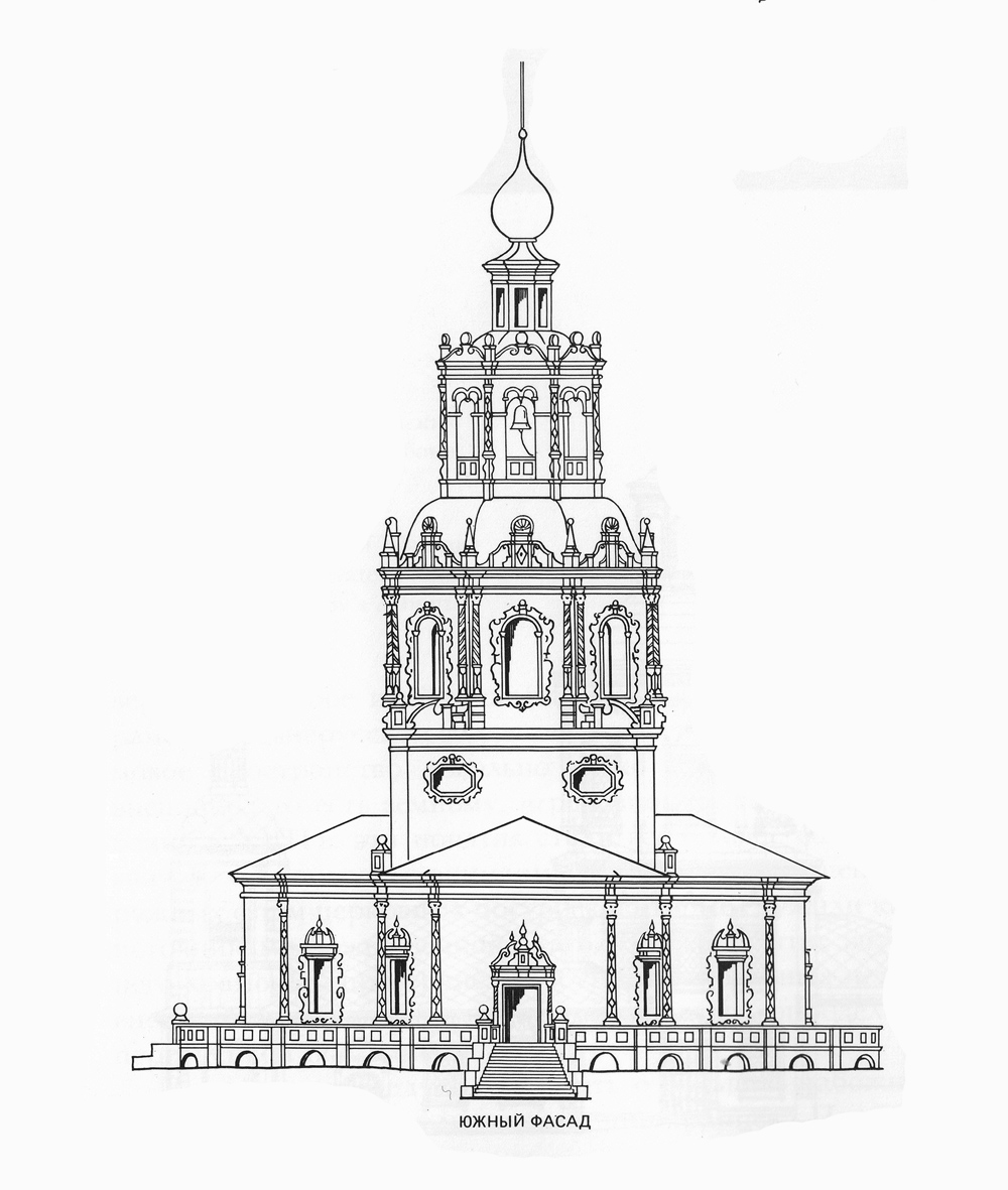 Южный фасад Спасской церкви в Уборах. Чертеж