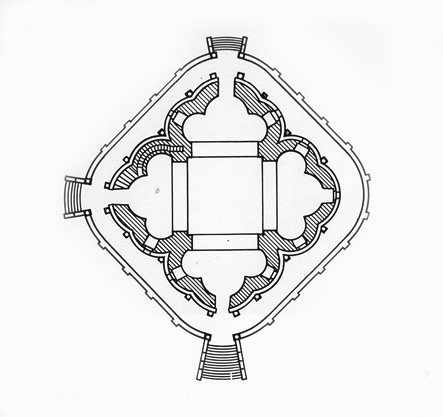 План церкви до перестройки лестниц в упрощенные прямоугольные. Чертеж